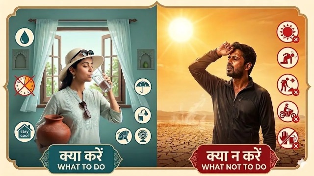 - पहनावा: हल्के रंग के, ढीले और सूती कपड़े पहनें। बाहर निकलते समय छाता या टोपी का प्रयोग करें।